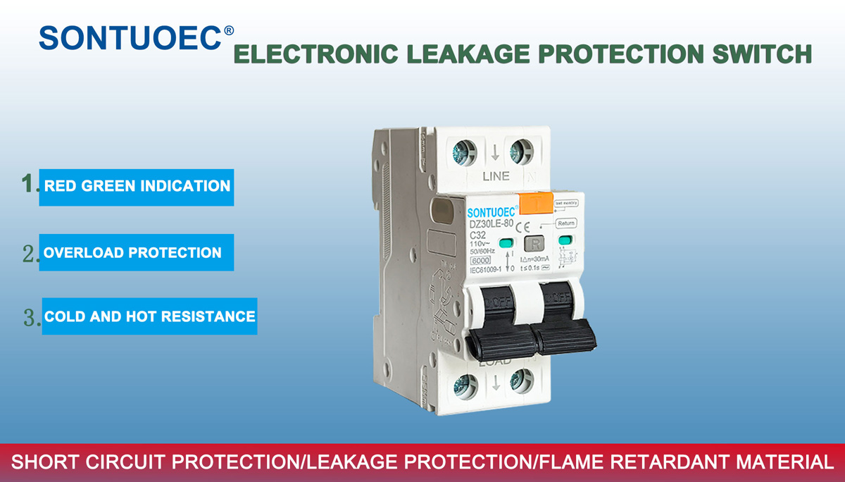 Ochrana úniku: DZ30LE-80 je schopen detekovat zbytkový proud (tj. Únik) v obvodu. Když zbytkový proud překročí prahovou hodnotu sady, DZ30LE-80 RCBO odřízne obvod ve velmi krátkém časovém období, aby se zabránilo nehodám a elektrickým požárům.