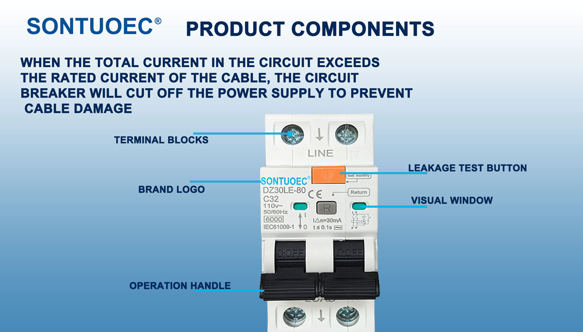 Ochrana zkratu: Když se zkrat nastane v obvodu, DZ30LE-80 RCBO rychle odřízne obvod, aby zabránil proudu zkratu v způsobu vážného poškození obvodu a zařízení.