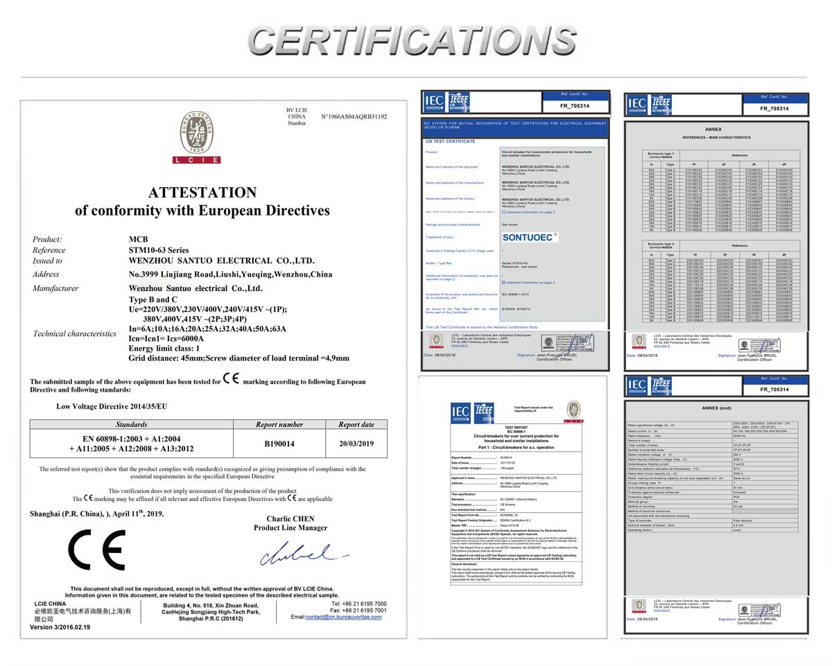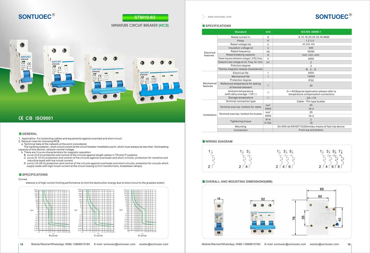 SONTUOEC je jedním z čínských dodavatelů/výrobců specializujících se na výrobu různých malých elektrických spotřebičů STM10-63 Series vysoce vypínací miniaturní jistič má vlastnosti pokročilé struktury, spolehlivý výkon, vysokou vypínací schopnost, elegantní vzhled a jeho plášť a části jsou vyrobeny z materiálu s odolností proti nárazu, silnou nehořlavou vlastností. Je vhodný pro napájení systémů s frekvencí 50 nebo 60, Ue 400V a méně, Ui 63A a méně. Vyhovuje normám IEC60898.1 a GB10963.1