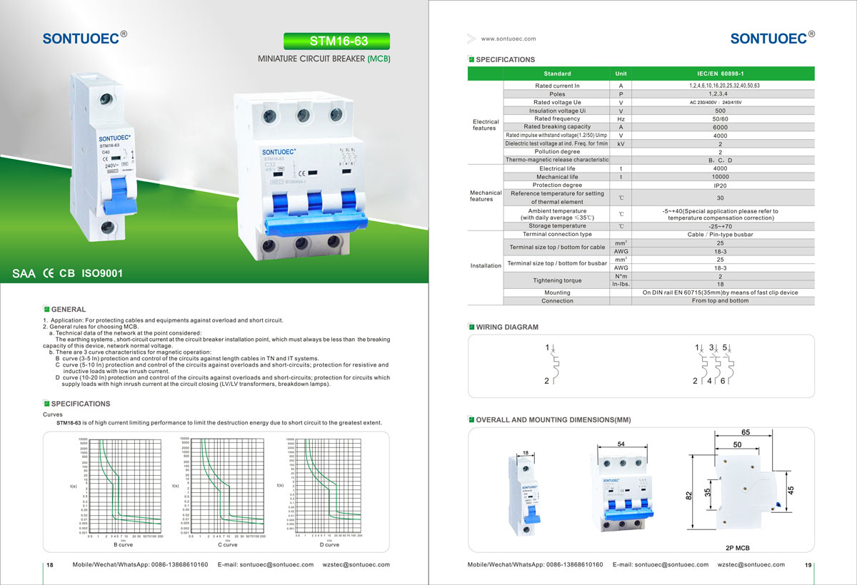 Sontuoec STM16-63 Miniaturní jistič obvodů 6KA 1p 2p 3p 4p 16a 230/400V série MCB s vysokým rozbitím miniaturního obvodu má rysy pokročilé struktury, výkonu spolehlivý, vysokoškolský rozbitou kapacitu, vzhled elegantní a vzhled elegantní a vzhled elegantní a vzhled elegantní, vzhled elegantní. Je vhodný pro napájecí systém AC 50/60Hz, jmenovité napětí 230/400 V a jmenovité proud až do 63a. Používá se hlavně v kancelářské budově, rezidenci, pro osvětlení, distribuci energie a přetížení a ochranu zařízení zkratu. Normálně jej lze také použít jako častý přenos energie. Odpovídá standardům IEC60898-1.